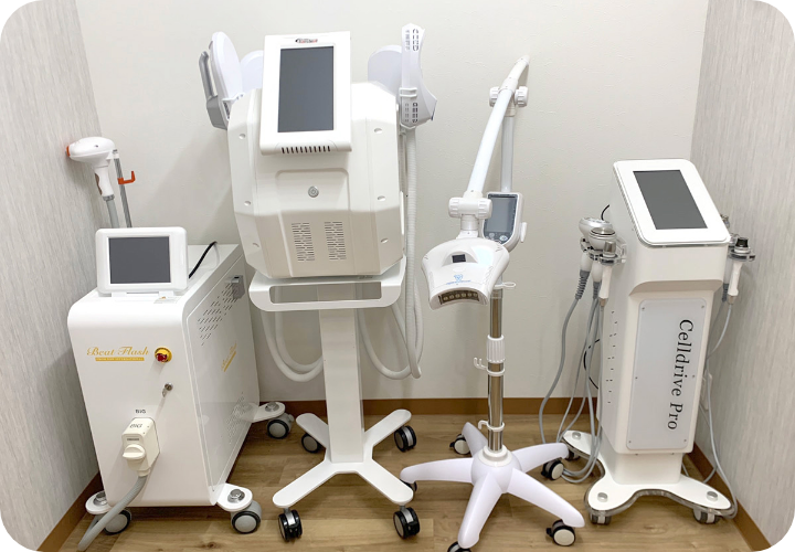 一般のエステサロンと同等の高級マシンを導入しております。継続的に使用して頂くことで効果を実感して頂けるかと思います。
